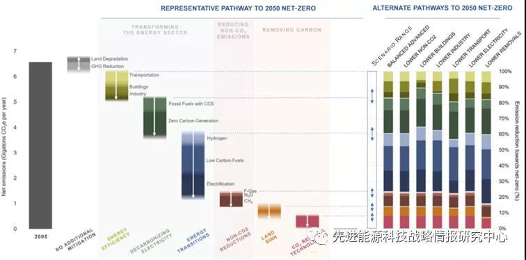 圖1 美國2050年實(shí)現(xiàn)凈零排放目標(biāo)的減排途徑
