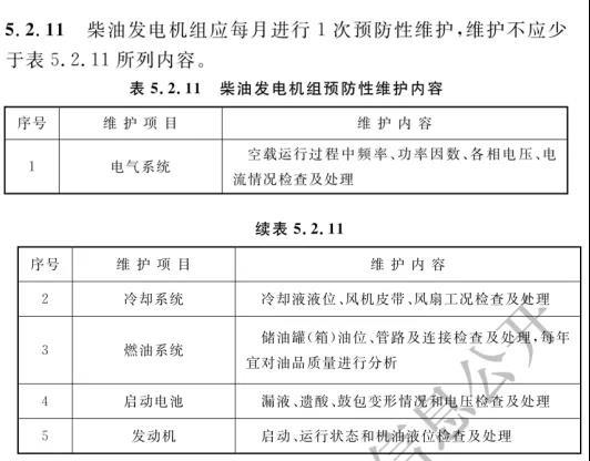 柴發(fā)應(yīng)每月進(jìn)行1次預(yù)防性維護(hù),維護(hù)不應(yīng)少于以下圖表中所列內(nèi)容。