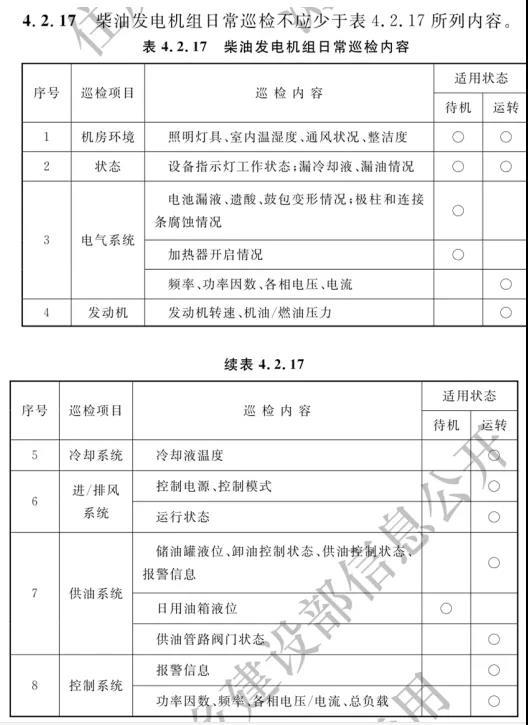 根據(jù)《數(shù)據(jù)中心基礎(chǔ)設(shè)施運行維護(hù)標(biāo)準(zhǔn)》,柴發(fā)日常巡檢包括內(nèi)容如下表。