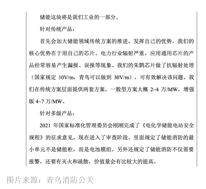 12月30日,青鳥消防工作人員向時代財經(jīng)表示,公司在儲能業(yè)務上的營收目前不方便披露。