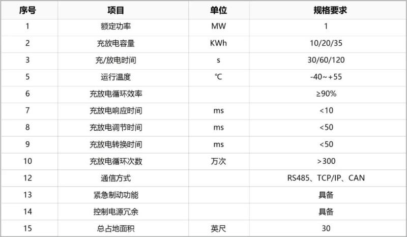 1MW飛輪儲(chǔ)能系統(tǒng)參數(shù)表