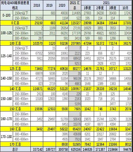 A00級產品2021年的增量主要是150-300公里區(qū)間的電池密度100-125間的電池產品。未來將在300公里的125瓦時以上的產品,這可以拿到0.9萬元左右補貼和2分的新能源積分,折算在1.2-1.5萬元的綜合新能源積分和補貼的優(yōu)勢,需要的是約15度電池,折算1度電的成本大約700-1000元,符合升級的經濟算法。