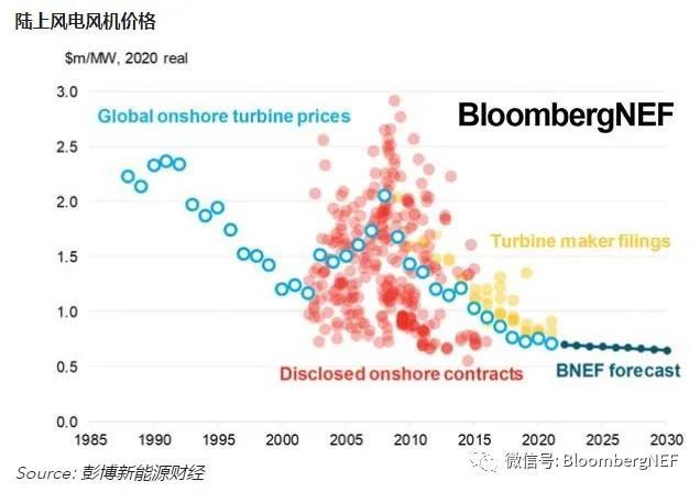 2021年下半年簽訂的風(fēng)機(jī)合同價(jià)格增長(zhǎng)至每兆瓦93萬(wàn)美元,比2021年上半年上漲9%,為2014年以來(lái)的最大漲幅,風(fēng)機(jī)價(jià)格回歸至2015年的水平。