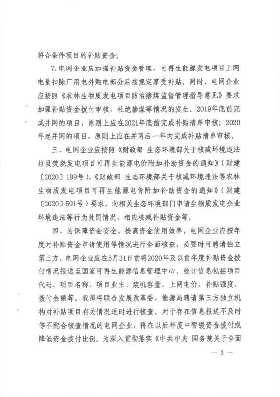 按照《財政部 國家發(fā)展改革委 國家能源局關于印發(fā)<可再生能源電價附加資金管理辦法>的通知》(財建〔2020〕5號)文件要求,國家電網(wǎng)有限公司(以下簡稱“公司”)將可再生能源電價附加中央補助資金的撥付原則和順序等相關情況公告如下:
