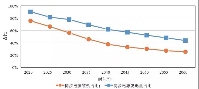 圖1 同步電源裝機(jī)及發(fā)電量占比的變化趨勢(shì)