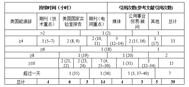 表1提供了對39份報告和文獻綜述的總結,這些文件用數(shù)值定義了長時儲能持續(xù)時間,通常以小時表示。在這時排除了一些別技術開發(fā)商發(fā)布或推廣的定義,沒有包含詳細討論長時儲能系統(tǒng)(LDES)但沒有明確定義持續(xù)時間的文件。