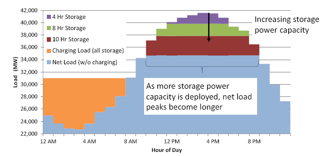 在這一示例中,隨著儲(chǔ)能部署的增加,維持高容量信用需要從4小時(shí)持續(xù)時(shí)間到最終10小時(shí)持續(xù)時(shí)間的系統(tǒng)過(guò)渡。