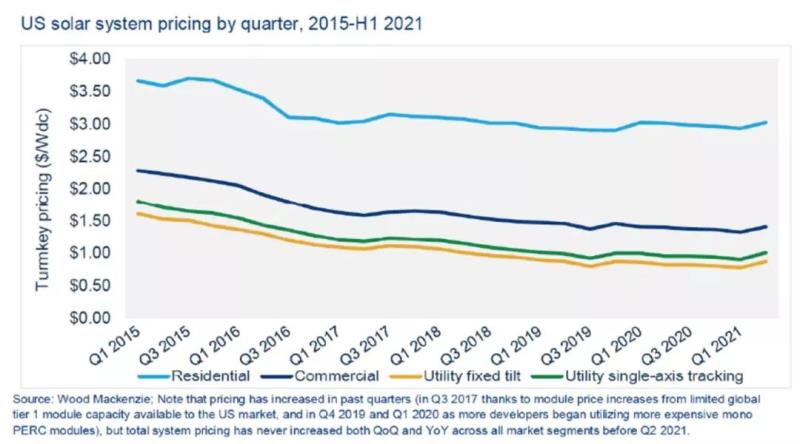 全球物流困境正迫使光伏材料和組件的交貨延遲和價(jià)格上漲。據(jù)一些分析師估計(jì),運(yùn)輸成本已上升500%。在許多地方太陽(yáng)能仍然是成本最低的發(fā)電來(lái)源,但由于利潤(rùn)微薄,正在重新談判購(gòu)電協(xié)議。盡管如此,對(duì)太陽(yáng)能的強(qiáng)勁需求意味著光伏項(xiàng)目更有是暫時(shí)推遲而不是取消。太陽(yáng)能投入成本和購(gòu)電協(xié)議的上漲與所有新發(fā)電成本和價(jià)格的上漲是一致的。