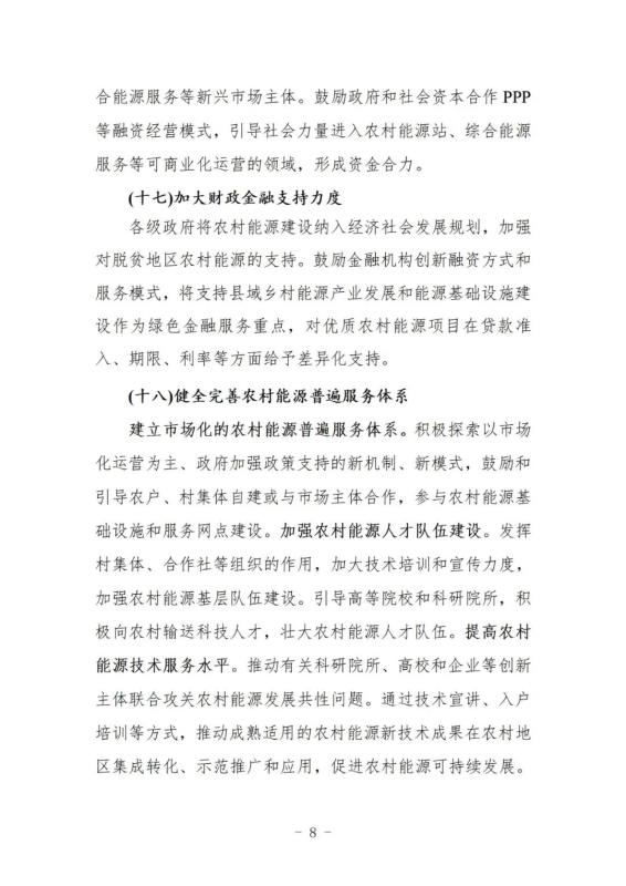 中國儲能網(wǎng)訊:12月29日,國家能源局、農(nóng)業(yè)農(nóng)村部、國家鄉(xiāng)村振興局印發(fā)《加快農(nóng)村能源轉(zhuǎn)型發(fā)展助力鄉(xiāng)村振興的實施意見》的通知,主要目標是到2025年,建成一批農(nóng)村能源綠色低碳試點,風電、太陽能、生物質(zhì)能、地熱能等占農(nóng)村能源的比重持續(xù)提升,農(nóng)村電網(wǎng)保障能力進一步增強,分布式可再生能源發(fā)展壯大,綠色低碳新模式新業(yè)態(tài)得到廣泛應(yīng)用,新能源產(chǎn)業(yè)成為農(nóng)村經(jīng)濟的重要補充和農(nóng)民增收的重要渠道,綠色、多元的農(nóng)村能源體系加快形成。