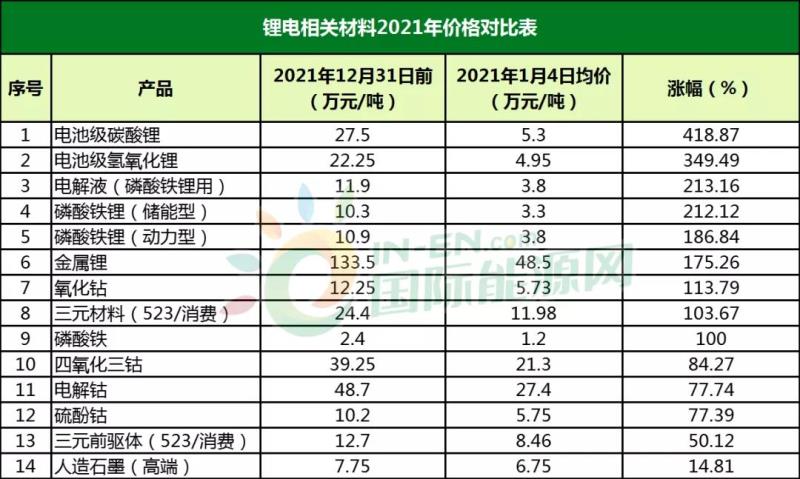 鋰電材料價(jià)格整體上漲了一個(gè)極為夸張的弧度,尤其是碳酸鋰的價(jià)格超400%的漲幅讓電化學(xué)儲(chǔ)能廠商倍感壓力;