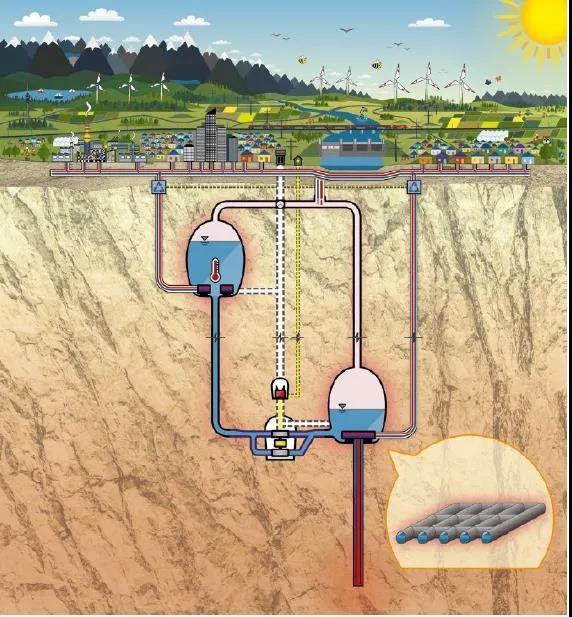 ? 熱力抽水蓄能是一個(gè)新概念,旨在最大限度地提高蓄熱效率,并表明深挖掘的巖石暴露在空氣中時(shí)會(huì)從空氣中吸收大量二氧化碳,從而減少系統(tǒng)生命周期的碳足跡。