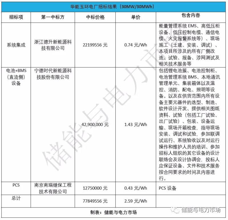 玉環(huán)電廠火儲(chǔ)聯(lián)合調(diào)頻項(xiàng)目,系統(tǒng)集成中標(biāo)價(jià)格2220萬元,電池直流側(cè)設(shè)備中標(biāo)價(jià)格4290萬元,PCS設(shè)備中標(biāo)價(jià)格1275萬元,折合總系統(tǒng)造價(jià)約2.59元/Wh。