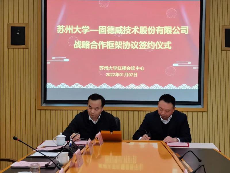 中國儲能網(wǎng)訊:1月7日,蘇州大學與固德威技術股份有限公司(以下簡稱“固德威”)戰(zhàn)略合作框架協(xié)議簽約儀式在蘇大紅樓會議中心舉行。雙方本著優(yōu)勢互補、資源共享、互利共贏的原則,在清潔電力領域進行精誠合作,深入推動蘇州大學—固德威清潔電力協(xié)同創(chuàng)新中心發(fā)展,并在人才培養(yǎng)、科技創(chuàng)新、成果轉化等領域開展全面合作。