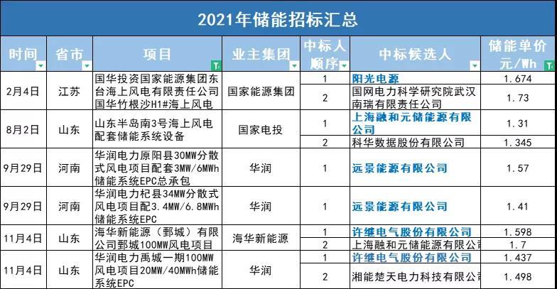 在2021年儲(chǔ)能項(xiàng)目EPC招標(biāo)中,新能源配套儲(chǔ)能44項(xiàng),招標(biāo)單位大多來自華潤(rùn)、國(guó)家電投或三峽集團(tuán)等央企。