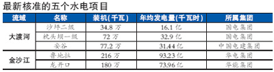 據(jù)悉,這五個(gè)大型水電的項(xiàng)目都已拿到路條,有些已在“十一五”期間開(kāi)工建設(shè),其中部分機(jī)組明年就可發(fā)電。