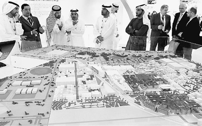 1月18日,在阿聯(lián)酋首都阿布扎比舉行的世界未來(lái)能源峰會(huì)新能源及環(huán)保展覽上,參觀者觀看“馬斯達(dá)爾城”模型。2006年,阿聯(lián)酋提出“馬斯達(dá)爾行動(dòng)計(jì)劃”,包括建立發(fā)展低碳經(jīng)濟(jì)體系及技術(shù)的“馬斯達(dá)爾研究院”和“馬斯達(dá)爾能源公司”,打造了一個(gè)全球性的可再生能源交流平臺(tái)(即現(xiàn)在的“世界未來(lái)能源峰會(huì)”)以及世界首個(gè)無(wú)碳城市——馬斯達(dá)爾城。