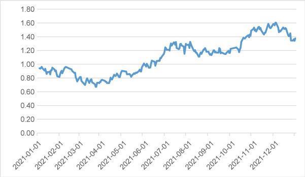 圖:2021年寧德時(shí)代總市值走勢(shì)圖(萬(wàn)億元)
