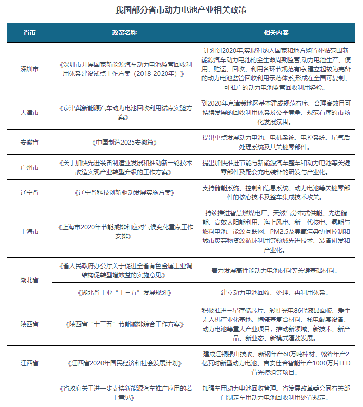 與此同時(shí),隨著國(guó)家政策對(duì)動(dòng)力電池產(chǎn)業(yè)大力扶持,多地政府也積極響應(yīng)出臺(tái)了一系列政策規(guī)劃助推動(dòng)力電池產(chǎn)業(yè)可持續(xù)發(fā)展。