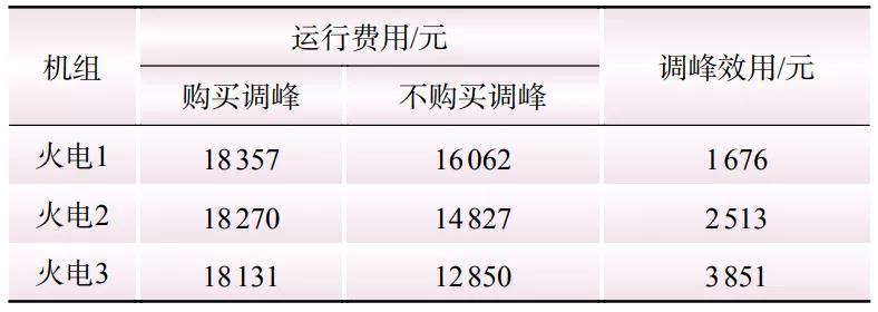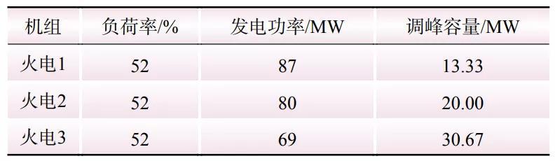 Table 3 The planned output value of generator units without purchasing peak load adjustment capacity