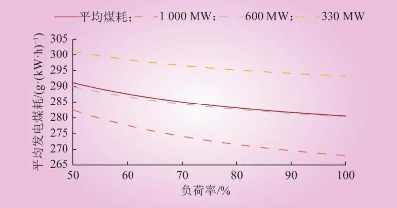 圖2 不同負荷率下火電機組的平均發(fā)電煤耗
