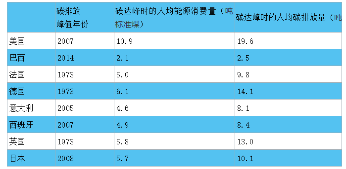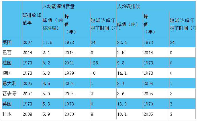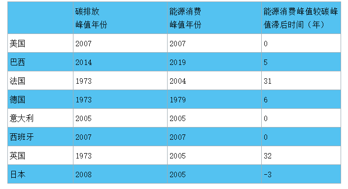 表6 典型國家能源消費峰值與碳達峰時間對比