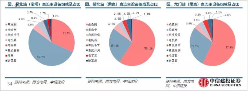 ▲昆柳龍工程常規(guī)換流站和柔直換流站設(shè)備組成占比,數(shù)據(jù)來(lái)源:中信建投