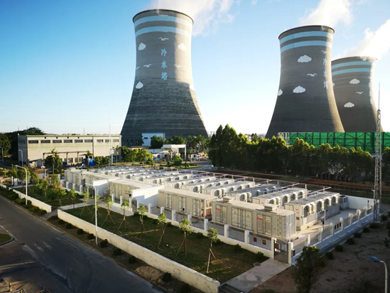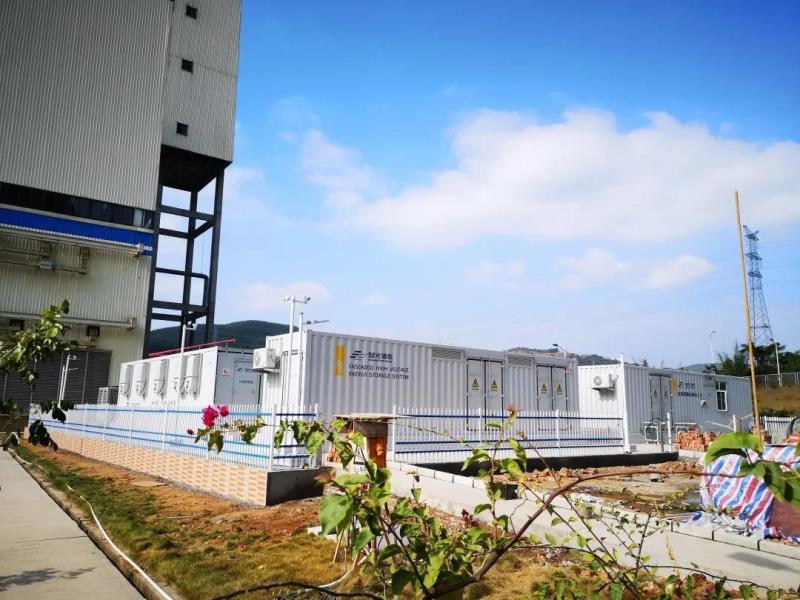 2、廣東茂名某熱電儲(chǔ)能調(diào)頻項(xiàng)目總裝機(jī)容量1150MW,2020年9月正式投運(yùn)。本項(xiàng)目儲(chǔ)能建設(shè)規(guī)模為20MW/10MWh,由4套5MW/2.5MWh級(jí)聯(lián)型高壓儲(chǔ)能系統(tǒng)并聯(lián)而成,電池選用磷酸鐵鋰電池。