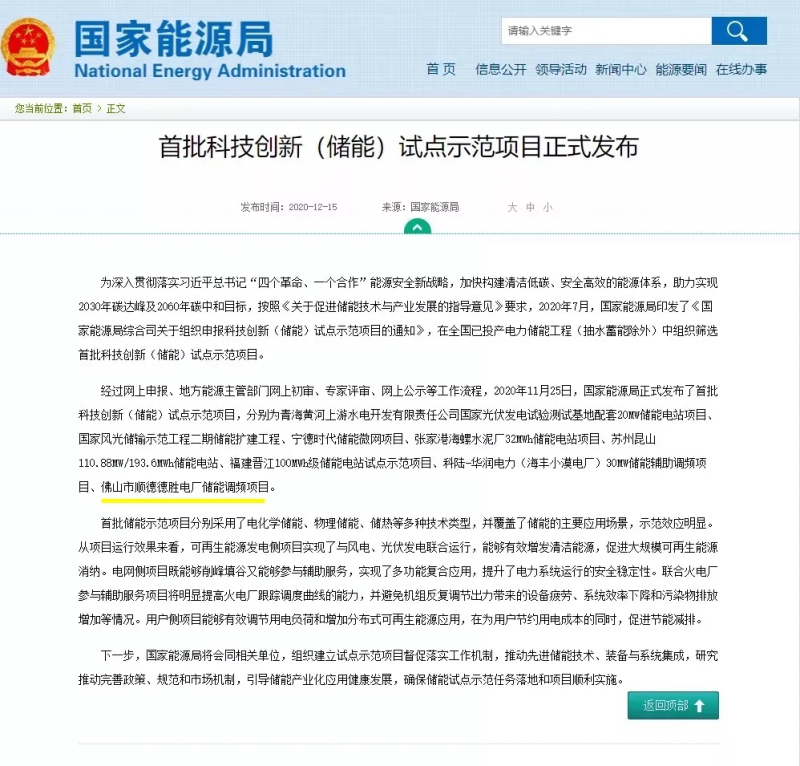 1、2020年12月,智光佛山市順德德勝電廠儲(chǔ)能調(diào)頻項(xiàng)目入選“國家能源局首批科技創(chuàng)新(儲(chǔ)能)試點(diǎn)示范項(xiàng)目”,智光級(jí)聯(lián)型高壓儲(chǔ)能技術(shù)被市場認(rèn)可,多個(gè)項(xiàng)目陸續(xù)投運(yùn)。