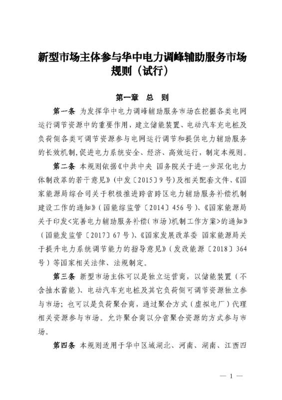 近年來(lái),隨著雙碳目標(biāo)提出和新型電力系統(tǒng)構(gòu)建,華中區(qū)域新能源發(fā)電裝機(jī)快速增長(zhǎng),系統(tǒng)調(diào)峰困難問(wèn)題日益突出,新能源棄電形勢(shì)日趨嚴(yán)峻。華中能源監(jiān)管局高度重視,積極深化華中跨省調(diào)峰輔助服務(wù)市場(chǎng)建設(shè),經(jīng)過(guò)一年多醞釀謀劃,于2021年11月正式印發(fā)《新型市場(chǎng)主體參與華中電力調(diào)峰輔助服務(wù)市場(chǎng)規(guī)則(試行)》。該規(guī)則為儲(chǔ)能裝置、電動(dòng)汽車充電樁及負(fù)荷側(cè)各類可調(diào)節(jié)資源參與省間調(diào)峰輔助服務(wù)交易建立了市場(chǎng)機(jī)制,使華中區(qū)域省間電力調(diào)峰輔助服務(wù)市場(chǎng)參與方由發(fā)電側(cè)延伸到需求側(cè)。新型市場(chǎng)主體通過(guò)改變自身充放電行為或用電行為,將高峰時(shí)段用電或充電騰挪到低谷、腰荷時(shí)段,從而為所在省的省級(jí)電網(wǎng)在低谷、腰荷時(shí)段吸納省外富余清潔能源提供一部分增量空間。規(guī)則的實(shí)施不僅有助于發(fā)揮需求側(cè)參與區(qū)域電網(wǎng)調(diào)節(jié)的能力、促進(jìn)清潔能源消納,而且還為新型市場(chǎng)主體帶來(lái)一部分增量收益。
