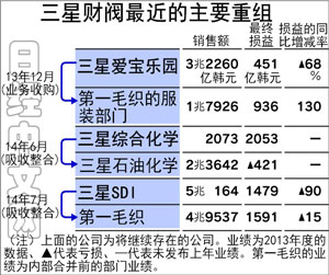 第一毛織是三星財閥在創(chuàng)始期設立的纖維公司,13年12月其服裝部門被轉讓給三星愛寶樂園,第一毛織成為電子材料和化學品廠商。此次重組后第一毛織將不復存在。