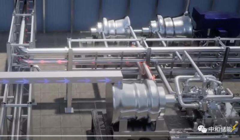在氣體回到地面進(jìn)入壓縮機(jī)之前,會先與儲存熱量的水進(jìn)行熱交換,氣體溫度變高,可以膨脹得更加厲害,發(fā)出更多的電。