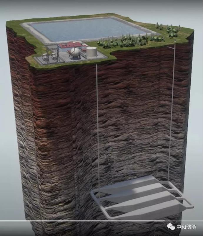 整個(gè)儲能系統(tǒng)如下圖所示,包括地面壓縮機(jī)、熱量儲存裝置、水庫和地下儲氣裝置。