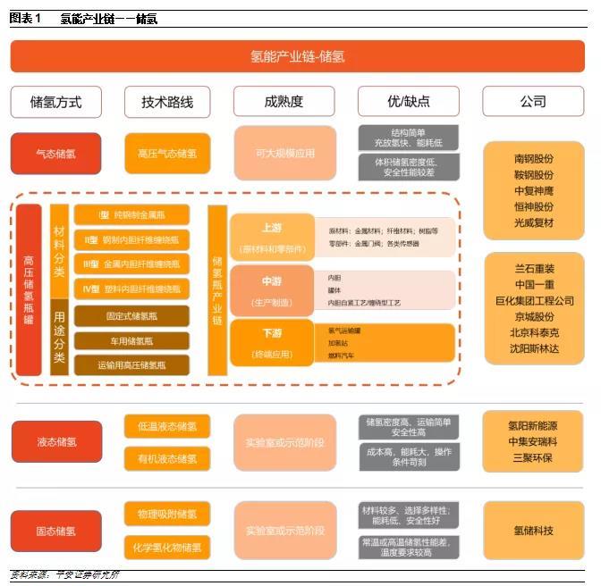 目前,主要儲(chǔ)氫方式有三種,分別是氣態(tài)儲(chǔ)氫、液態(tài)儲(chǔ)氫、固態(tài)儲(chǔ)氫。從技術(shù)發(fā)展方向來看,目前高壓氣態(tài)儲(chǔ)氫技術(shù)比較成熟,一定時(shí)間內(nèi)都將是國(guó)內(nèi)主推的儲(chǔ)氫技術(shù);有機(jī)物液體儲(chǔ)氫技術(shù)可以利用傳統(tǒng)的石油基礎(chǔ)設(shè)施進(jìn)行運(yùn)輸、加注,方便建立像加油站那樣的加氫網(wǎng)絡(luò),相比于其它技術(shù)而言,具有獨(dú)一無二的安全性和運(yùn)輸便利性,但該技術(shù)尚有較多技術(shù)難題,未來看會(huì)極具應(yīng)用前景;固態(tài)儲(chǔ)氫應(yīng)用在燃料電池汽車上優(yōu)點(diǎn)十分明顯,但現(xiàn)在技術(shù)還有待突破,短期內(nèi)不會(huì)有較大范圍的應(yīng)用,長(zhǎng)期來看發(fā)展?jié)摿Ρ容^大。