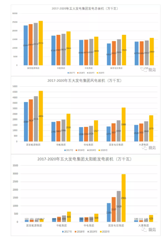 以下為2019-2020年五大發(fā)電集團的裝機情況。