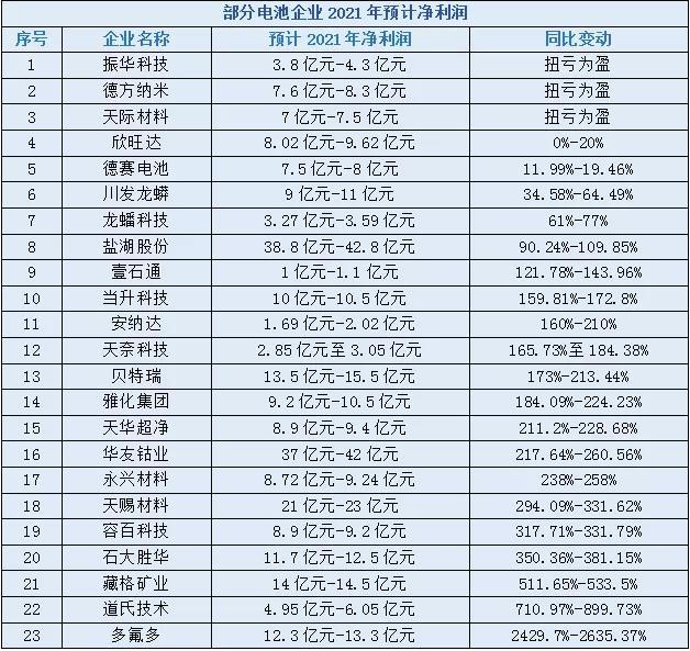 同樣因?yàn)榱姿徜嚠a(chǎn)品產(chǎn)銷量大幅增長,以及市場對六氟磷酸鋰的需求大增,導(dǎo)致六氟磷酸鋰市場銷售價(jià)格上漲,天際材料實(shí)現(xiàn)扭虧為盈。此外,德方納米、振華科技也在去年實(shí)現(xiàn)扭虧為盈。