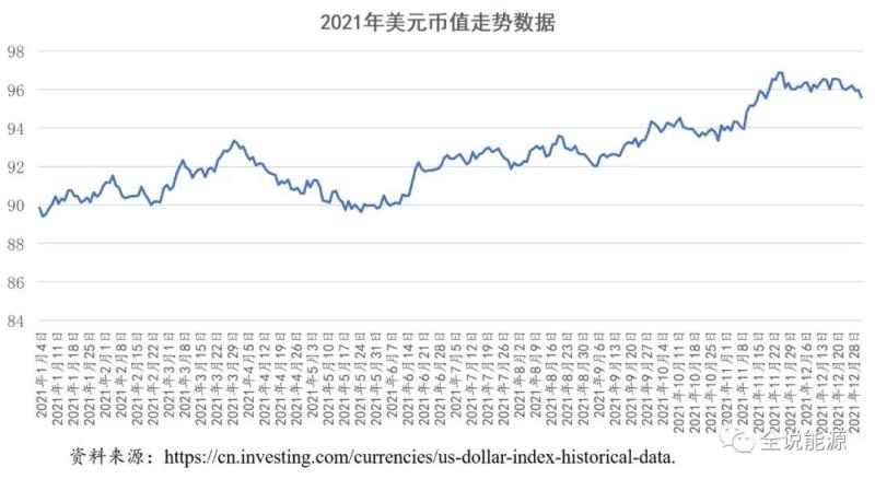 從統(tǒng)計數(shù)據(jù)看,2021年美元幣值的變化,與這一年里不斷上漲的天然氣、煤炭乃至原油價格基本保持一致。因此,2021年美元幣值變化的統(tǒng)計數(shù)字,無法給某些美元與能源價值上漲之間關(guān)系的說法以合乎邏輯的支撐。