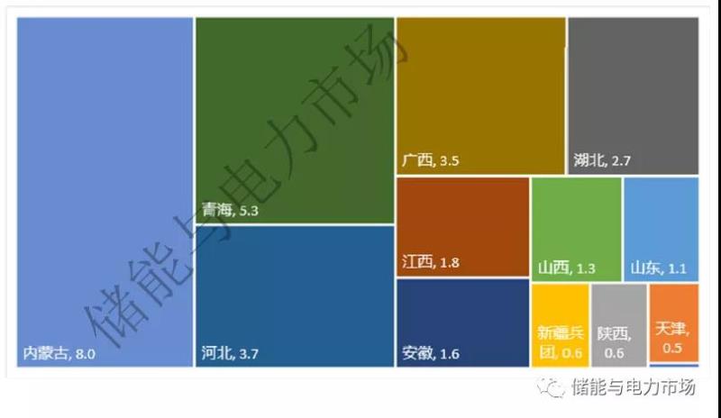 其中內(nèi)蒙古因儲能配置比例高達新能源裝機的30%,使其合計新增儲能達到8GW。