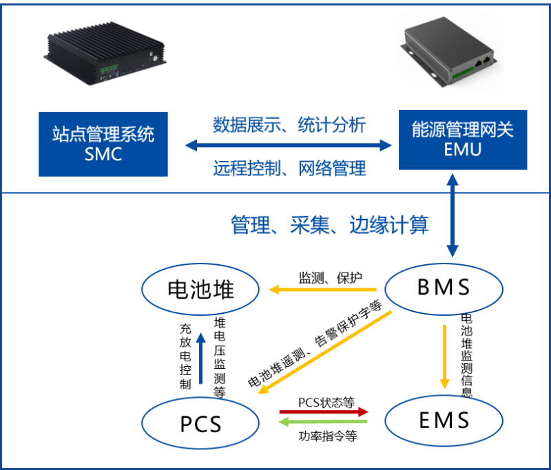 對(duì)儲(chǔ)能電站的動(dòng)環(huán)、消防、安監(jiān)設(shè)備提供數(shù)據(jù)接入采集、遠(yuǎn)程控制的能力;實(shí)現(xiàn)告警與安全預(yù)案聯(lián)動(dòng),確保主動(dòng)安全;