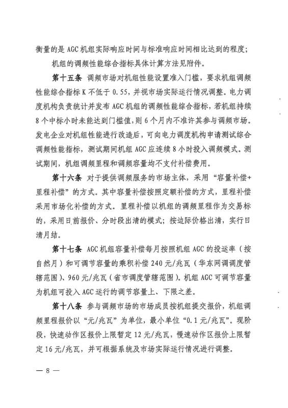 在2019年版文件要求綜合調(diào)頻性能指標(biāo)不低于0.53,參與調(diào)頻市場的報(bào)價(jià)上限12元/MW。此次文件對調(diào)頻性能指標(biāo)與報(bào)價(jià)上線都有提升。