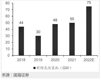 國海證券分析認為,風電、光伏屬于能源新基建中的一環(huán),目前裝機潛力巨大。同時風電、光伏產業(yè)鏈規(guī)模龐大,相關領域投資也成為暢通國內經濟循環(huán)的重要手段。集邦咨詢認為,在全球能源轉型的大背景下,可再生能源發(fā)展尤為重要,預計2022年光伏行業(yè)新增裝機規(guī)模將在75GW左右。