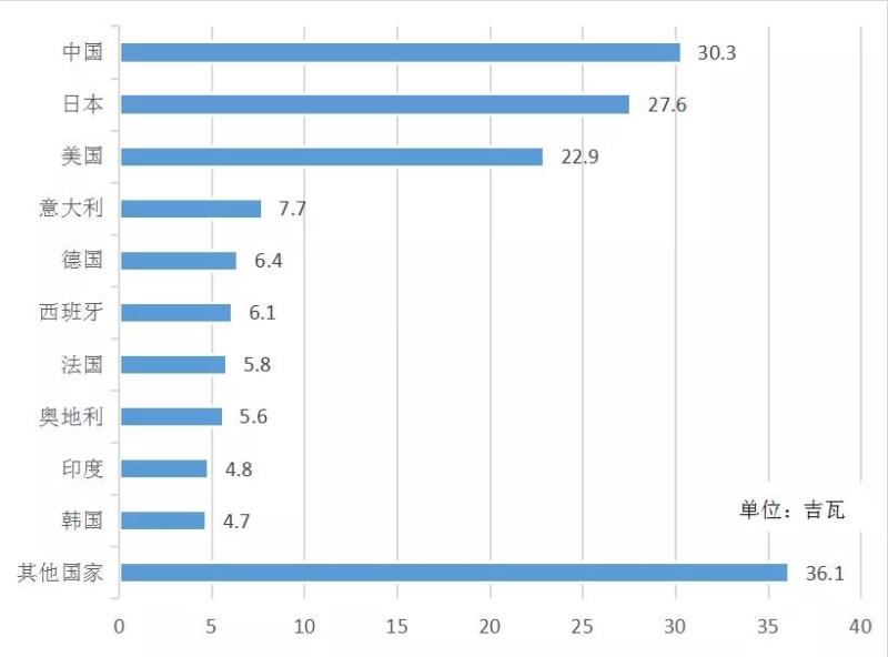 圖2 2019年底全球抽水蓄能裝機(jī)情況