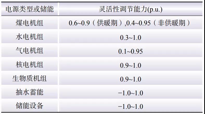 表4 不同類型電源及儲能的靈活調(diào)節(jié)能力