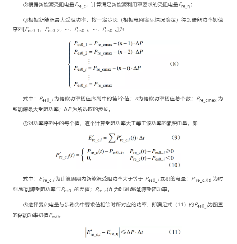 根據(jù)新能源利用率要求計算儲能的功率初值的計算步驟為: