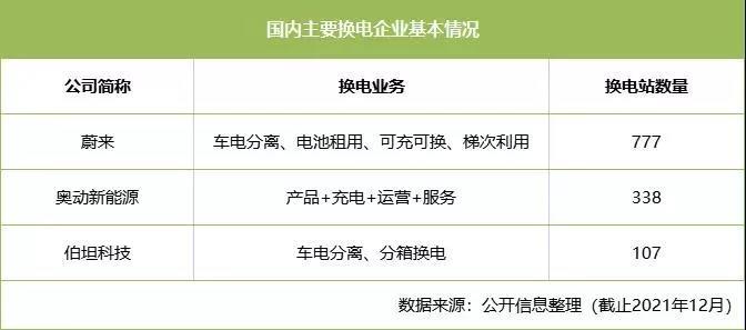 在寧德時代的EVOGO出現(xiàn)之前,國內(nèi)已有數(shù)家換電運營企業(yè),較大的三家分別是蔚來、奧動新能源、伯坦科技,三家的換電站占據(jù)了目前絕大部分換電的市場份額。