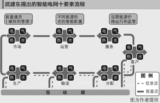 2010年8月5日,國際電工委員會智能電網(wǎng)工作委員會德國專家組召集人、國際電工委員會智能電網(wǎng)標準主起草人Guenther認為,“武建東教授確立了(智能能源網(wǎng)學說)十個要素流程模型和優(yōu)先發(fā)展的八個重要領域,這些都是非常精彩和有遠見的提議。”借此,我簡單介紹一下根特先生,2009年4月29-30日在法國巴黎召開國際電工委員會標準委員會智能電網(wǎng)工作組的第1次工作會議之際, Eckardt Guenther即向SG3提交了“IEC Standardization Smart Grid”報告,這個報告以后成為IEC SG3智能電網(wǎng)報告的主要框架。嗣后,在2009年11月28-29日在美國丹佛召開的SG3工作組第2次會議中進行了全面完善。2009年他將提交IEC SG3的智能電網(wǎng)標準的報告轉(zhuǎn)給了我們參考,希望中國積極參加國際標準的頂層設計,這個報告以后我也轉(zhuǎn)交給了多個國家和地方政府機構設計智能電網(wǎng)架構時借鑒和參考。