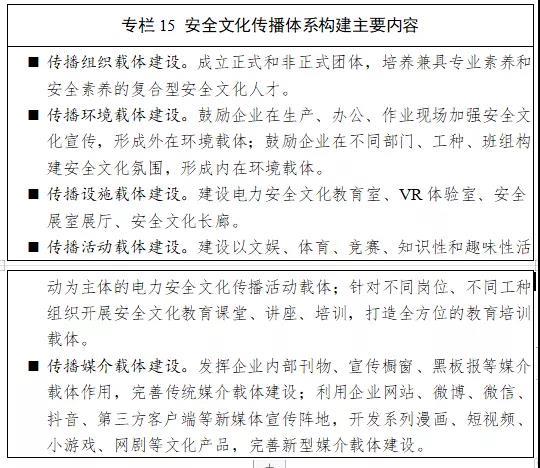持續(xù)加強“和諧·守規(guī)”安全文化建設(shè)。貫徹落實《電力安全文化建設(shè)指導(dǎo)意見》,推進文化制度、組織機構(gòu)、傳播體系、產(chǎn)業(yè)發(fā)展機制、品牌創(chuàng)建、教育培訓(xùn)等六項重點工程建設(shè),利用工業(yè)互聯(lián)網(wǎng)、大數(shù)據(jù)、人工智能技術(shù),形成電力安全文化新形態(tài)。完善電力企業(yè)安全文化建設(shè)基本規(guī)范,打造各具特色的企業(yè)安全文化。強化電力企業(yè)管理層的安全文化引領(lǐng)作用,提高主要負責人參與安全文化活動的頻度。大力開展電力安全科普基地建設(shè)和科普宣傳工作,利用“安全生產(chǎn)月”“國家防災(zāi)減災(zāi)日”等活動,固化一批安全科普精品活動項目,提高全員安全文化建設(shè)參與度。