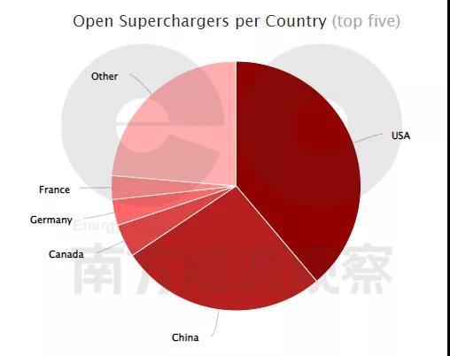 特斯拉超級充電樁在全球各國分布情況