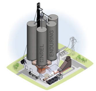 NREL研究人員開發(fā)了一個原型,以測試一種改變游戲規(guī)則的新型熱儲能技術,該技術使用廉價的硅砂作為儲能介質。通過使用低成本熱儲能和高效動力循環(huán)(ENDURING)技術構建經濟可行的長時儲能系統(tǒng)是一種可靠、經濟高效且可擴展的解決方案,可以在任何地方安裝和部署。該儲能技術能夠經濟可行地存儲高達26GWh的熱能,為建筑和工業(yè)過程加熱提供機會來替代燃煤發(fā)電設施或天然氣發(fā)電設施。NREL已經與Babcock&Wilcox公司開展合作開發(fā)這種儲熱能技術,Babcock&Wilcox公司擁有獨家知識產權。
