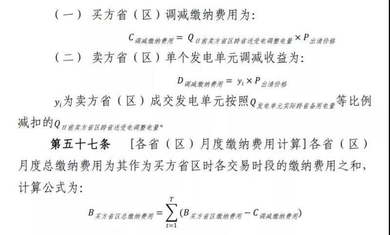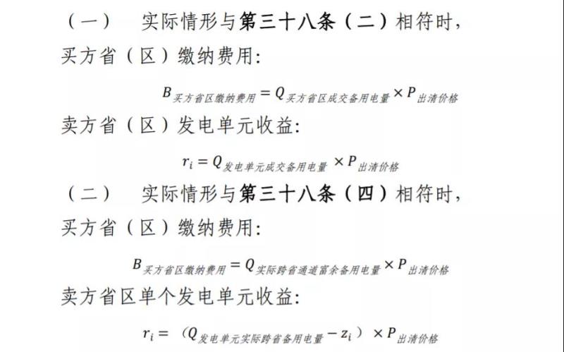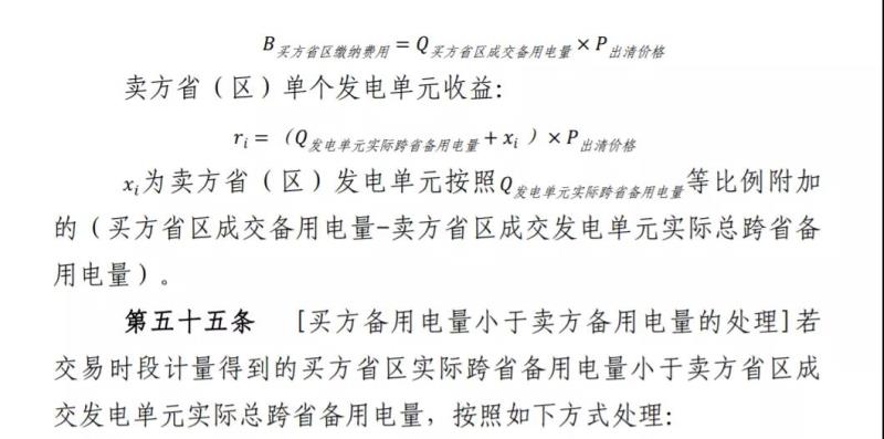 第五十三條 [買(mǎi)賣(mài)雙方備用電量平衡的處理]若交易時(shí)段計(jì)量得到的買(mǎi)方省(區(qū))實(shí)際跨省備用電量等于賣(mài)方?。▍^(qū))成交發(fā)電單元實(shí)際總跨省備用電量,買(mǎi)方?。▍^(qū))按照成交備用容量和市場(chǎng)出清價(jià)格向賣(mài)方?。▍^(qū))成交發(fā)電單元支付備用容量購(gòu)買(mǎi)費(fèi)用。