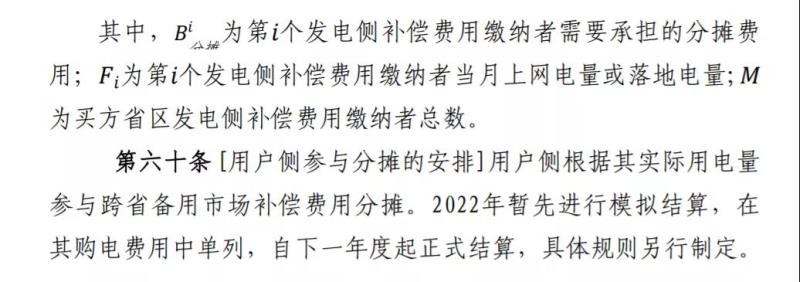 (一)天生橋、龍灘、烏東德、溪洛渡、瀾滄江上游五廠(chǎng)等,全廠(chǎng)備用容量按照送電比例計(jì)入各受電?。▍^(qū))備用資源參與跨省備用市場(chǎng)交易,根據(jù)實(shí)際成交容量和市場(chǎng)出清價(jià)格計(jì)算其備用收益。根據(jù)月度落地各受電?。▍^(qū))的電量參與市場(chǎng)費(fèi)用分?jǐn)偂?